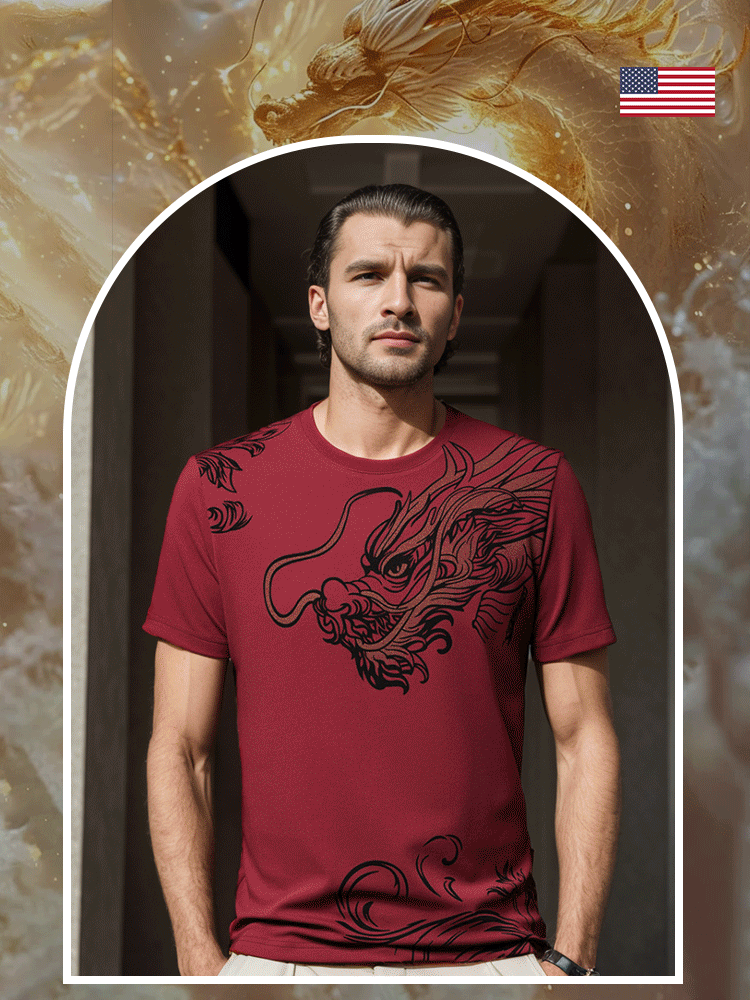 إصدار لعام التنين - تيشيرت رجالي فاخر قصير الأكمام بياقة دائرية
