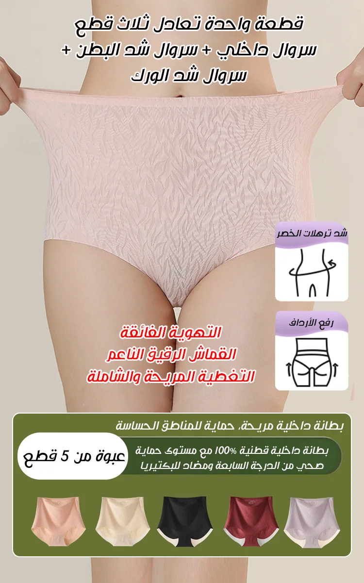 مجموعة السروال الداخلي الفرنسي مع الخصر المترفع لشد البطن والخصر ورفع الورك للنساء