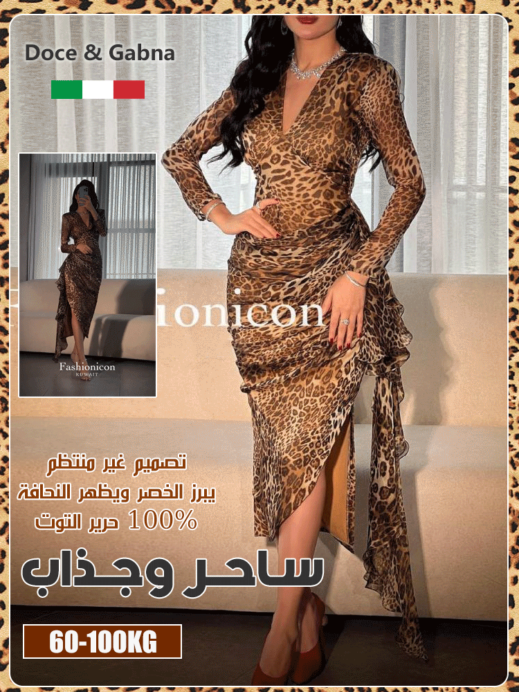 فستان ضيق أنيق غير منتظم بنقشة النمر من إيطاليا