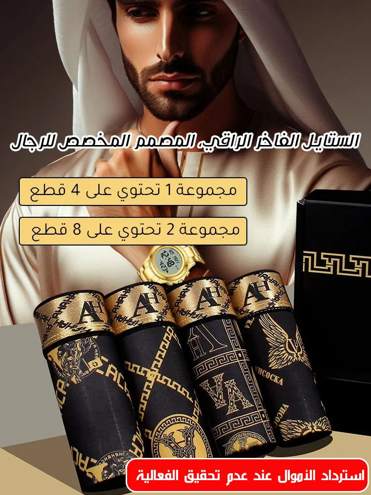 سروال داخلي راقي بستايل روماني فاخر مع أحجار مغناطيسية للرجل(علبة هدايا تحتوي على 4 قطع)